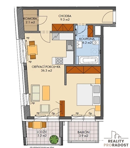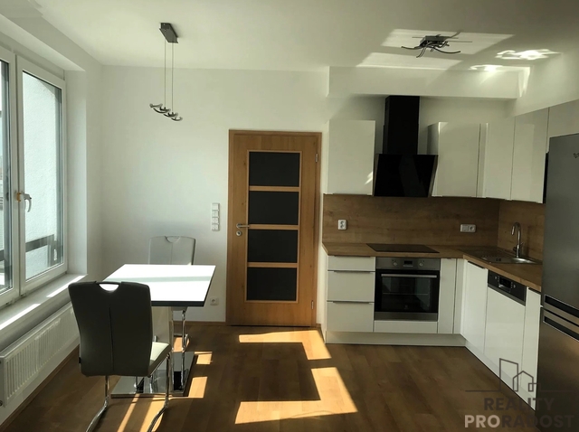 Nabízíme k pronájmu krásný, plně vybavený byt 2 + kk s balkonem, lodžií a komorou v ul. Lovosická Praha 9 - Střížkov, v nově postaveném bytovém komplexu PROSEK PARK. Byt o celkové užitné ploše 56 m² a s balkonem o velikosti 4 m² a lodžií 5 m² se nachází v 6. patře moderní novostavby s výtahem, která byla zkolaudována v roce 2018. V bytě je k dispozici moderní kuchyňská linka vybavená spotřebiči, včetně varné desky, elektrické trouby, mikrovlnné trouby a lednice s mrazákem. Dále je tu jídelní stůl se židlemi. Obývací prostor je vybaven sedací soupravou, konferenčním stolkem a komodou se vstupem na zasklenou lodžii. Ložnice, oddělená zasouvacími dveřmi, je zařízena prostorným dvojlůžkem a šatní skříní přes celou zeď. Koupelna je vybavena vanou, pračkou a toaletu. V předsíni se nachází předsíňová stěna s lavicí a vstup do komory o výměře 2 m². Podlahy vinyl a dlažba. K bytu je možno pronajmout také vnitřní garážové stání, které je prakticky umístěno poblíž výtahu za cenu 2 tis. Kč. Bezpečný přístup do domu i garáže je zajištěn na čip. V okolí domu je veškerá občanská vybavenost, včetně obchodů a nedaleké polikliniky. Velkou předností této nemovitosti je skvělá dopravní dostupnost; stanice metra C Střížkov se nachází pouhé 3-4 minuty chůze od domu s dojezdem za 15-20 minut do centra. Byt je ideální pro maximálně dvě osoby. Nájem: 22.000,- Kč Poplatky: 3.500,- Kč Elektřina: převádí se na nájemníka Kauce: 1 x nájem Provize RK: 1 x nájem K nastěhování od dubna 2026, prohlídky budou možné od 6.4.2026 dle domluvy s majitelkou. V případě zájmu o prohlídku nás neváhejte kontaktovat.