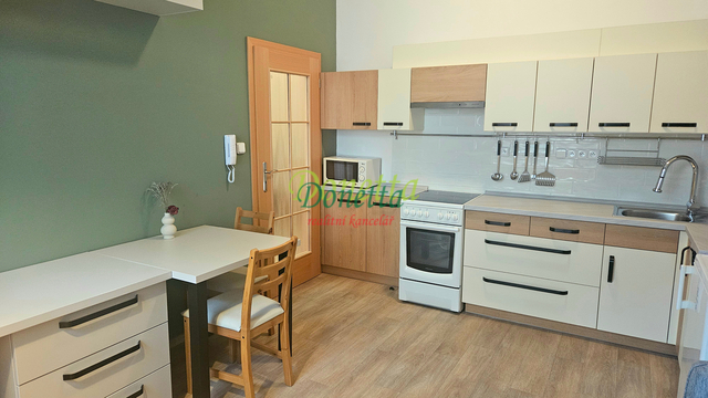 Byt je vybaven všemi potřebnými spotřebiči a nábytkem včetně kuchyňské linky, gauče a postelí, což znamená, že je připraven k okamžitému nastěhování. V ceně nájmu je zahrnut internet od společnosti Linecom.