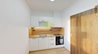 Kuchyňský kout je vybaven kuchyňskou linkou s indukční varnou deskou, elektrickou troubou, přípravou na myčku nádobí a samostatně stojící lednicí s mrazákem. V koupelně se nachází vana, umyvadlo, otopný žebřík a příprava pro pračku. Byt se pronajímá nevybavený, s výjimkou kuchyňské linky a spotřebičů.