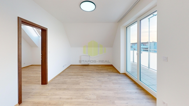 Byt se nachází v 3. nadzemním podlaží, má podlahovou plochu 52,77 m² a disponuje prostornou lodžií o výměře 14,27 m², přístupnou z obývacího pokoje. Celková plocha bytu činí 67,04 m². Byt je orientován na jihozápad a jeho dispozice zahrnuje obývací pokoj s kuchyňským koutem, ložnici, vstupní halu, velkorysou šatnu, koupelnu a samostatné WC.