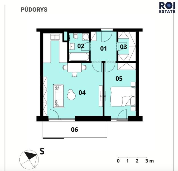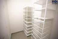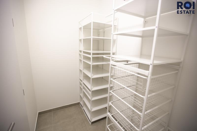 Obývací prostor je spojen s plně vybavenou kuchyní, která zahrnuje vestavěné spotřebiče, jako jsou trouba, mikrovlnná trouba a varná deska. Z obývací části vede vstup na prostorný balkon, kde můžete pohodlně odpočívat. Ložnice je vybavena francouzským oknem, které zajišťuje dostatek denního světla. V bytě se nachází také koupelna s vanou, umyvadlem, toaletou a pračkou. Součástí bytu je šatna s praktickým úložným systémem, který poskytuje dostatek prostoru.
