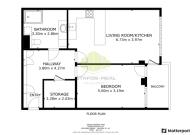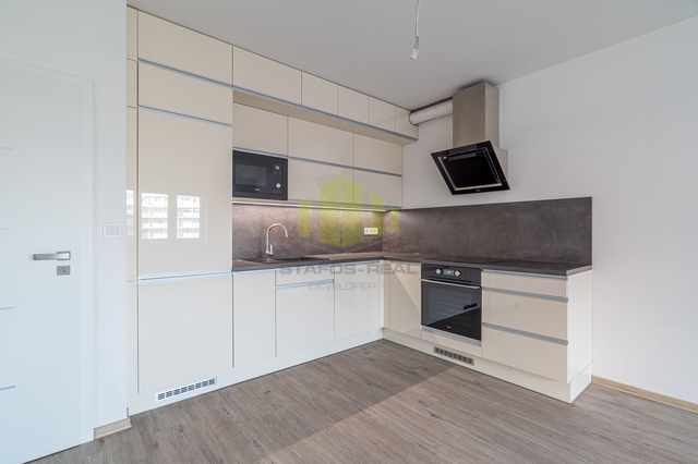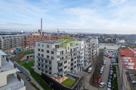 Dispozice bytu zahrnuje obývací pokoj s kuchyňským koutem, samostatnou ložnici, předsíň, prostornou šatnu a koupelnu s toaletou. Z obou obytných místností je přímý vstup na lodžii orientovanou na východ do tichého vnitrobloku. Součástí pronájmu je také vnitřní parkovací stání v domě, které zajišťuje pohodlné parkování v centru města.