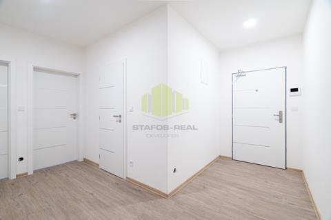 Byt i dům byly realizovány s důrazem na kvalitní materiály a vysoký uživatelský komfort. V bytě jsou instalovány vinylové podlahy s dřevodekorem, teplovodní podlahové vytápění, obložkové dřevěné zárubně, keramické obklady a dlažby, francouzská okna s izolačními trojskly, značková sanita, venkovní hliníkové žaluzie a klimatizace, která zajišťuje komfort v letních měsících i možnost dotápění v přechodném období. Díky použití akustických mezibytových příček má byt nadstandardní zvukovou izolaci. Dům je zateplen a spadá do energetické třídy B, tedy velmi úsporné. Součástí vybavení bytu bude dále vestavěná šatní skříň v ložnici a botník s věšáky a několik skříněk, vše aktuálně nově budované. Není součástí aktuální fotodokumentace.