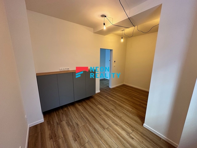 Nabízíme k pronájmu zrekonstruovaný luxusní byt o dispozici 2+KK a celkové výměře 66,5 m², který se nachází v blízkosti centra Ostravy. Byt je situován ve 2. nadzemním podlaží bytového domu a k dispozici je možnost využití parkovacího stání ve společné garáži. Velkou výhodou jsou elektrické rolety v oknech a klimatizace, které zajišťují vysoký komfort bydlení po celý rok. Interiér bytu je navržen v atraktivním industriálním stylu a nabízí velmi praktické dispoziční řešení. Vstupní část tvoří prostorná chodba s vestavěnými skříněmi a velkým zrcadlem. Koupelna je prostorná, vybavená vanou, umyvadlem, koupelnovým nábytkem a toaletou, přičemž je zde dostatek místa pro pračku i sušičku. Součástí obývacího pokoje je moderně řešená kuchyňská linka s varnou deskou, elektrickou troubou a digestoří, doplněná o bar s židlemi. Jedinečný charakter prostoru podtrhují odhalené betonové překlady na stropě a stylové moderní osvětlení. Díky velkému francouzskému oknu je byt velmi světlý a působí útulným dojmem. Ložnice je vybavena vestavěnými skříněmi a disponuje oknem. Celý interiér bytu je promyšlen do jednotné barevné kombinace, která je patrná na obkladech, nábytku, dveřích i podlahách. V celém bytě je instalováno heat-flow podlahové vytápění, které zajišťuje vysoký tepelný komfort a zároveň nízké provozní náklady. Lokalita je velmi žádaná, s výbornou dostupností městské hromadné dopravy a kompletní občanskou vybaveností v okolí. V těsné blízkosti se nachází centrum Nová Karolina, které nabízí široké možnosti nákupů, služeb i volnočasového vyžití. Měsíční nájemné je 15 390Kč + služby 3200 Kč - 2 osoby . Vratná kauce 2x nájem vč. služeb. Provize RK 1x nájem včetně služeb a DPH.