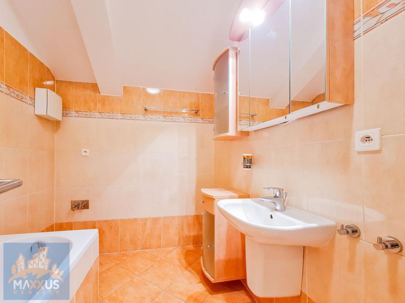 K dlouhodobému pronájmu nabízíme nábytkem vybavený podkrovní byt 2+kk o užitné ploše 64,6 m2 se sklepní kójí (3 m2) situovanou v suterénu domu, ul. Boloňská, Praha 10 – Horní Měcholupy. K bytu náleží garážové parkovací stání ve vedlejším parkovacím domě za měsíční poplatek 1.500,- Kč. Byt se nachází v 6. podlaží 6. podlažního domu s výtahem. Dispozice bytu: vstupní předsíň, obývací pokoj s jídelnou a plně vybavenou kuchyňskou linkou (myčka, lednice s mrazákem, el. varná deska, trouba), samostatná toaleta, koupelna s vanou a přípojkou pračky a ložnice. Velkou výhodou bytu jsou úložné prostory řešený v rámci vestavěných skříní a sítě proti hmyzu. Podlahy: laminátové a dlažba. Vytápění: ústřední. V okolí domu se nachází Golf Club Hostivař, Kaufland, MŠ, ZŠ, MÚ Praha 15, oblíbený Pivovar Hostivar. Velmi rychlé spojení s centrem metropole do 15 minut -> vlaková stanice Praha-Horní Měcholupy. Poplatky jsou 3.500,- Kč a elektřina se převádí na nájemce. Byt je volný k nastěhování ihned. Makléř doporučuje prohlídku. PENB: G* štítek nebyl dodán, hodnota bude aktualizována.