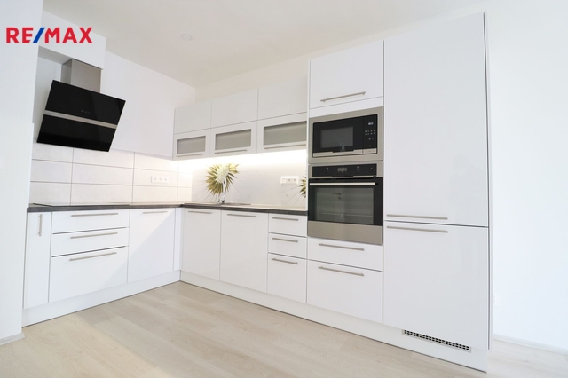Pronájem velmi pěkného, východně orientovaného bytu 2+kk (vnitřní plocha 56 m2) s velkou terasou (14 m2), který leží v 5.NP cihlové novostavby s výtahem v příjemné a klidné části Praha 10 – Modřany (ul. Rosýsova) s výbornou a rychlou dostupností do centra (zastávka autobusu 3 min. chůze). Interiér bytu je tvořen vstupní předsíní s vestavěnou skříní (ve skříni je umístěna automatická pračka), velkým obývacím pokojem se vstupem na prostornou terasu a s kuchyňským koutem (nová moderní kuchyňská linka s vestavěnými spotřebiči - sklokeramická varná deska, digestoř, myčka nádobí, elektrická trouba, mikrovlnná trouba, lednice), 2. pokojem s velkou vestavěnou skříní + druhým vstupem na terasu a koupelnu s vanou + toaletou. Podlahy jsou tvořeny kombinací plovoucí podlahy (pokoje) a moderní dlažby (předsíň, koupelna). K bytu patří garážové stání a zděný sklep, které se nachází v 1. PP. V blízkosti bytu je veškerá občanská vybavenost (školy, školky, zdravotnická zařízení, obchody a sportoviště) a místa pro odpočinek a relaxaci (cholupický park, tenisové kurty, restaurace, ….). Pro více informací volejte makléře nabídky.