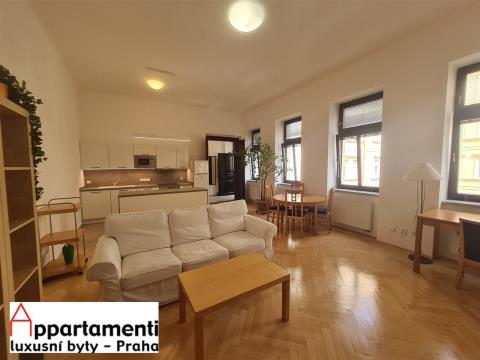Byt prošel v roce 2001 kompletní renovací, přičemž byly zachovány prvky klasické stavební architektury spojené s moderním bydlením a zvýšeným komfortem. Výška stropů 2,8 metru dodává interiéru vzdušnost a prostornost. Díky umístění na jižní straně je byt během dne krásně prosvětlený, cena pronájmu činí 29 513 Kč za měsíc a nezahrnuje poplatky a služby ve výši 3 195 Kč. Kauce byla stanovena na 59 026 Kč. K bytu lze pronajmout parkovací stání v suterénu budovy za příplatek.