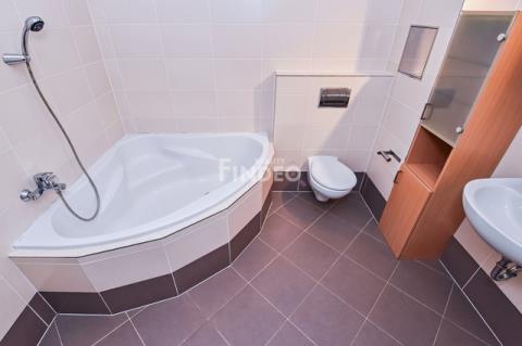 Dlouhodobý pronájem mimořádně prostorného a světlého bytu o dispozici 2+kk a výměře 72 m2, umístěného v 1.NP novostavby zdařilého projektu Nad Modřanskou roklí v ulici Papírníkova. Předností bytu je bezbariérový přístup do domu i bytu, terasa (9 m2) orientovaná na JZ, prostorný sklep a v ceně je i garážové parkovací stání v domě. Předsíň je vybavena velkou vestav. skříní se zrcadlem, botníkem a věšákovou stěnou, dostatek úložného místa poskytuje i komora v bytě. Do koupelny s vanou, WC, umyvadlem a žebříkovým radiátorem se vejde i pračka. Dominantou bytu je zajímavě řešený, prostorný obývací pokoj (36,5m2) s kuchyňskou a jídelní částí. Moderní kuchyňská linka vybavená vestav. spotřebiči (lednice s mrazákem, mikrovlnná trouba, sklokeramická varná deska, elektrická multifunkční trouba, digestoř a dřez s baterií, myčka nádobí o šířce 60 cm) nabízí dostatek pracovních ploch a úložných prostor. V místnostech jsou nainstalována stropní svítidla. Ložnice je orientována na západ. Byt působí velmi příjemným dojmem, použité materiály designově i kompozičně ladí a dodávají na útulnosti. Přímo u domu je zastávka MHD – autobusy 215, 165 na Kačerov či Jižní Město. Lokalita je velmi vyhledávanou pro dostatek zeleně, v bezprostřední blízkosti je přírodní park Modřanská rokle, kde jsou vybudovány cyklostezky. Hledáte-li pěkný prostorný byt v klidné lokalitě s výbornou dopravní i občanskou vybaveností, pak to může být právě tento. K dispozici bude od 1.5.2026, prohlídky jsou po dohodě možné již nyní.