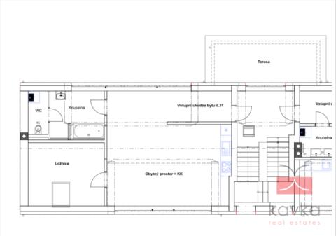 KAVKA REAL ESTATES Vám exkluzivně zprostředkují k pronájmu nový byt o dispozici 2+KK, užitné ploše 74,53 m² v centru města Humpolec. Byt se nachází v 3.NP třípodlažního nově realizovaného bytového domu o 6-ti bytech a je bez výtahu. U realizace tohoto objektu je kladený důraz na moderní a pohodlné bydlení v centru města Humpolec. Dispoziční členění: vstupní chodba, koupelna (vana), samostatné WC, kuchyň + obývací pokoj, pokoj. Součástí bytu je společná terasa (6,87 m2) s nádherným výhledem do okolí a sklepní kóje v suterénu bytového domu. Dále je zde možnost pronájmu venkovního parkovacího stání. Vytápění a ohřev vody je řešeno kondenzačním plynovým kotlem (podlahové vytápění) v kuchyni je ohřev vody řešen přes průtokový ohřívač. Nízké provozní náklady. Velmi dobrá lokalita. Kolaudace 2025. Veškerá občanská vybavenost nedaleko bytu. V případě zájmu o více informací či prohlídku kontaktujte makléře společnosti.