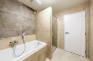 K dlouhodobému pronájmu nabízíme zcela nový byt 2+kk (59 m2) s velkorysou terasou (15 m2) a garážovým parkovacím stáním v oblíbené lokalitě v Plzni na Roudné, ve stejnojmenné ulici Na Roudné. Dosud nikým neobývaná bytová jednotka je situována do 2. nadzemního podlaží (z celkových 5) energeticky úsporné novostavby (třída C). Bytový dům Rezidence Roudná Dispozice bytu je velmi praktická. Po vstupu do bytu se nachází předsíň, na kterou navazuje centrální chodba zajišťující přístup do všech částí bytu, a to do obývacího pokoje s kuchyňským koutem, ložnice, komory, koupelny a samostatné toalety. Dominantou obou obytných místností jsou velkoformátová francouzská okna, která interiéru dodávají množství denního světla a zároveň umožňují přímý vstup na terasu. Ta se rozprostírá po celé šířce bytu a nabízí ideální prostor pro odpočinek i posezení na čerstvém vzduchu. Součástí vybavení bytu je moderní kuchyňská linka s vestavěnými spotřebiči, mezi které patří elektrická trouba, sklokeramická varná deska a digestoř. Myčka nádobí není součástí vybavení, avšak je možné ji do kuchyňské linky snadno doplnit vyjmutím jedné ze spodních skříněk. Vytápění je ústřední, totéž dodávka teplé vody. Na vše jsou samostatná měřidla. Televizní signál je zajištěn společnou anténou. Internetové připojení přes optickou síť je možné od poskytovatelů jako O2, Vodafone nebo T-Mobile (rychlost až 2 Gb/s). Kromě již zmiňovaného garážového parkovacího stání k bytu náleží také zděná sklepní kóje s plnými dveřmi (3 m2). Lokalita se vyznačuje vynikající dostupností do centra města, které je vzdáleno přibližně 15 minut chůze nebo tři zastávky autobusem č. 20. V okolí najdete oblíbené pěší a cyklistické trasy podél řek Mže a Berounky, ideální pro procházky, běh i další volnočasové aktivity. V blízkosti se nachází také nákupní centrum RONDEL s širokou nabídkou obchodů a služeb, například hypermarket Kaufland, drogerie Rossmann či restaurace McDonald's. Výhodou je rovněž rychlé napojení na páteřní městské komunikace. Cenové podmínky pronájmu: • Nájemné 16.900 Kč/měsíc • Zúčtovatelné zálohy na energie a služby včetně elektřiny 3.800 Kč/1 osoba/měsíc 4.200 Kč/2 osoby/měsíc • Jistota (vratná kauce) 35.000 Kč • Provize RK 20.500 Kč Byt je k nastěhování ihned. Pro bližší informace či domluvení prohlídky volejte na uvedený mobilní telefon.