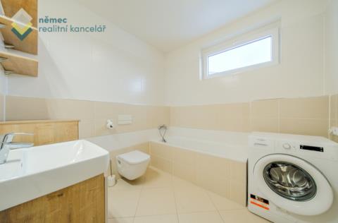 Chtěli byste bydlet v rezidenčním komplexu novostaveb nabízející veškerou občanskou vybavenost? Mít velký balkón a vlastní parkovací stání? Pak vás bude zajímat pronájem prostorného bytu 2+kk o celkové ploše 78,5 m² (64,4 m² byt + 14,1 m² balkón) v žádaném a v roce 2019 dokončeném developerském projektu Prosek Park XIII, Praha 9. Po vstupu do bytu se octnete v zádveří s praktickými šatními prvky na míru a zrcadlem. Celkově chodba nabízí 8,8 m² a je z ní možné vstoupit doleva do praktické komory (2,9 m²), dále do koupelny (6,3 m²) s vanou, pračkou, závěsným wc a umyvadlovou koupelnovou skřínkou. Na chodbu navazuje obrovský obývací pokoj s kuchyňskou linkou na míru (a barovým pultem). Obývák je velmi světlý díky několika oknům a zejména tomu francouzskému na balkón. Ten je rohový a nabízí výhled do klidu. Ložnice je samostatná a je vybavena šatní skříní na míru. Upozorňujeme, že na 2D půdorysu od developera není nakreslena celá příčka do ložnice, ve skutečnosti je ložnice oddělená za plnými dveřmi viz fotografie. Tato nemovitost je připravená k okamžitému nastěhování a nabízí skvělé bydlení pro jednotlivce či páry. Nabízí komfortní bydlení - jedná se o novostavbu. K nastěhování od 1. 3. 2026 nebo po dohodě i dříve. Velmi žádaná lokalita s veškerou občanskou vybaveností. V rámci komplexu novostaveb jsou zde potraviny, vinárna, kavárna, Z-box, prádelna, květinářství a další služby. Pouhých pár kroků od domu je poliklinika, metro Střížkov, lékárna, bankomat, jídelna, obchody. V blízkosti pak OC Letňany, Bowling a bazén, Ďáblický háj, Bobová dráha Prosek, minipivovar... Cena nájemného zahrnuje parkovací stání. K ceně je nutné připočíst zúčtovatelné zálohy na služby ve výši 4 500,- Kč / měsíc + záloha na elektřinu 1 000,- Kč / měsíc. Při nastěhování se hradí vratná jistota ve výši 2 nájemných, provize ve výši 1 nájemného + DPH. Vřele doporučujeme tento byt k prohlídce.