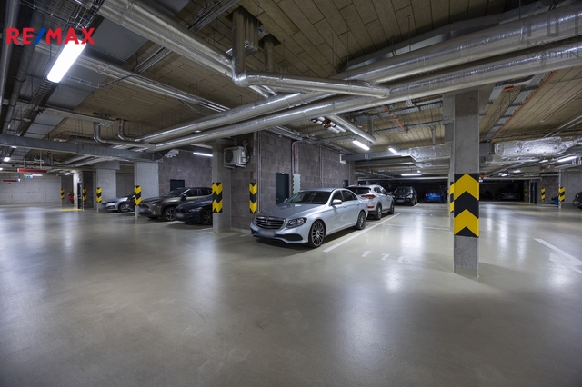 K bytu náleží také prostorný sklep o velikosti 5,46 m², který poskytuje dostatek úložného prostoru, a vlastní parkovací stání, což je v Praze velká výhoda.