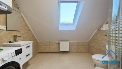 Nový byt k pronájmu: Ve velmi příjemné a klidné části Brandýsa nad Labem, v blízkosti řeky Labe a nedaleko od Brandýského zámku, v ulici S.K. Neumanna, nabízíme v rodinném domě se zahradou aktuálně zcela nově dokončovaný, romantický byt 2+kk. Stavební práce se aktuálně finalizují, byt bude dokončen a pronajat nejpozději od 1.1.2026 dle postupu prací. Byt 2kk disponuje větší předsíní, ze které lze vstoupit do zcela nové koupelny se sprchovým koutem, toaletou, umyvadlem se zrcadlem, bojlerem na ohřev teplé vody a pračkou, na odpočinkovou terasu s výměrou 32 m2 nebo do obývacího pokoje s plně vybaveným kuchyňským koutem. Podkrovní ložnice je přístupná z obývacího pokoje pomocí schodů. Byt je nově vybudovaný a vybavený kuchyňskou linkou se sklokeramickou varnou deskou, elektrickou troubou, dřezem, digestoří a velkou lednicí s mrazákem. Na podlahách vinylové krytiny. Podlahová plocha bytu je 49,1 m2 s tím, že obývací pokoj má jednu sešikmenou stěnu a ložnice je plně podkrovní. Zálohy na služby (předběžný odhad): 500 Kč/osobu - voda 3000 Kč/byt - teplo 1400 Kč/byt - elektrika 300 Kč/byt - servis V rámci užívání nájemci je třeba počítat s určitým mírným omezením z hlediska pokračujících prací na vnější obálce budovy a během roku i s výměnou některých oken (cca týdenní omezení bude nájemcům kompenzováno). Vytápění je řešeno centrálním plynovým kotlem (spotřeba rozpočítána na plochu). Pro elektriku a vodu mají byty své vlastní podružné měřiče. Přední velkou zahradu u domu bude možné využívat do konce roku. Parkování na ulici vedle nemovitosti nebo na zatravněné části druhé části pozemku. Jistota (kauce): 2x měsíční nájemné Odměna RK za servis měsíční nájemné + DPH. Hledáme pouze solidní zájemce, bez dluhů, exekucí, s doložitelným pracovním poměrem (nebo podnikáním) a bez větších domácích mazlíčků. Zájemci, pište přes kontaktní formulář s informacemi o sobě (počet lidí, doba pronájmu, důvod hledání nového bydlení apod.). Vzhledem ke stávajícímu velkému zájmu o nájemní bydlení nejsme schopni obsloužit zájemce telefonicky. Byt je přístupný schodištěm, není bezbariérový a je vhodný max. pro 2 osoby.