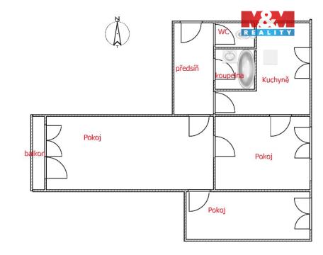 K pronájmu, Byt 3+1, 77 m2 Růžová