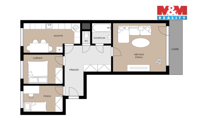 K pronájmu, Byt 3+kk, 58 m2 Bělčická