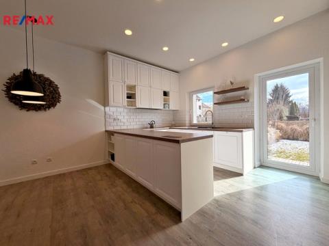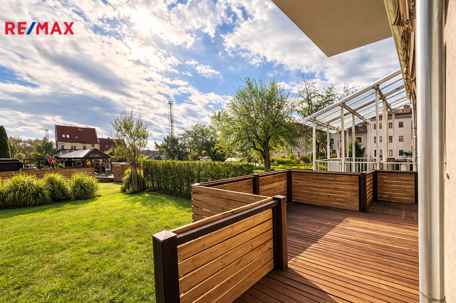 Nabízíme k pronájmu zařízený byt, umístěný v 1. NP bytového domu se dvěma samostatnými byty v klidné lokalitě Suché Vrbné, v Českých Budějovicích. Předmětem pronájmu je byt dispozičně řešený jako 3+1 s podlahovou plochou 73 m2, jehož součástí je úložný prostor na chodbě a také prostorná terasa s přímým vstupem na vlastní zahradu s plochou 110 m2. V suterénu domu jsou k dispozici sklepní prostory kde je k výhradnímu užívání místnost o výměře cca 15 m2. Byt prošel před pár lety celkovou rekonstrukcí. Dispozice: vstupní předsíň, na prostornou kuchyň s jídelním koutem vybavenou kuchyňskou linkou se spotřebiči, ze které je vstup na terasu se zahradou, navazuje obývací pokoj. Dále je k dispozici ložnice, koupelna se sprchovým koutem a WC a dětský pokoj. Byt je ve výborném stavu, pronajímá se včetně zánovního vybavení, které je patrné z přiložených fotografií. K bytu náleží dřevěná terasa a vymezená část přilehlé zahrady. Byt je vybaven bezpečnostním systémem. Vytápění bytové jednotky je řešené vlastním plynovým kotlem umístěným ve sklepě s rozvody do radiátorů, v koupelně je podlahové vytápění. Má vlastní měření plynu i elektřiny a podružné měření vody. Nájemné činí 23.000 Kč + spotřeba energií (cca 5.000 Kč/měs/2os.). Kauce je stanovena na dva měsíční nájmy. Pronájem je vhodný pro max. 3 osoby. Majitel preferuje dlouhodobé nájemníky, nekuřáky bez domácích zvířat. Byt doporučuji zejména těm, kteří hledají kvalitní bydlení s výbornou dostupností do centra (zastávka MHD je kousek od domu) a možností využívání zahrady s terasou. Pronajímající si vyhrazuje právo vybrat nájemce na základě jím zvolených kritérií.