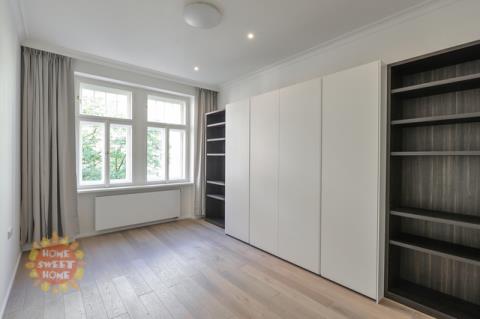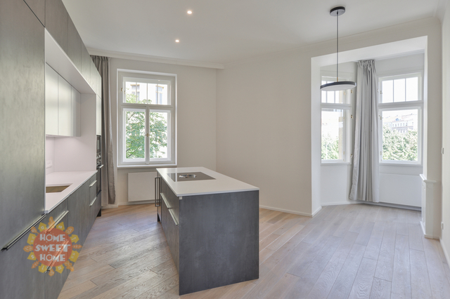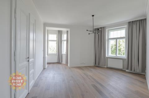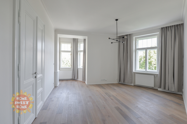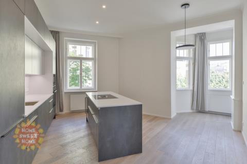 Nabízíme k pronájmu jedinečný zrekonstruovaný prostorný byt 3+1 (138 m2), který se nachází ve třetím nadzemním podlaží citlivě zrekonstruovaného secesního činžovního domu s výtahem v oblíbené lokalitě pražských Vinohrad, v ulici Náměstí Jiřího z Poděbrad. Dispozice bytu: prostorná vstupní chodba s vestavěnými skříněmi, rohový obývací pokoj, samostatná kuchyně s jídelním prostorem a moderní kuchyňskou linkou, dvě samostatné ložnice (jedna má šatnu, druhá má vestavěné skříně), dvě koupelny (jedna se sprchovým koutem a toaletou, druhá se sprchovým koutem), další toaleta samostatně. Kuchyňský kout je plně vybaven moderními spotřebiči. V bytě použity kvalitní materiály, dubové parkety, designová dlažba, plynový kotel, bezpečnostní dveře, pračka a sušička. K bytu je nutno si pronajmout Jedno parkovací stání vzdálené 350m od budovy a cena je 7.865, -Kč včetně DPH (323 euro). Komfortní bydlení v moderním bytě v srdci krásného secesního domu. Byt pro nejnáročnější. Exkluzivní lokalita na Vinohradech, přímo na náměstí Jiřího z Poděbrad. Kulturní a společenské centrum (farmářské trhy). Kompletní občanská vybavenost, v okolí mnoho příjemných restaurací, kaváren, bister a vináren. Obchodní centrum Flora 10 minut. Skvělá dopravní dostupnost, stanice metra, taktéž tramvajová zastávka v pěší dostupnosti. Dostatek zeleně – kousek od parku Riegrovy Sady. Byt je nabízen nezařízený, možnost zařídit nábytkem. K dispozici od 1.4.2026