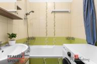 Koupelna s vanou a pračkou je prakticky oddělena od samostatného WC.