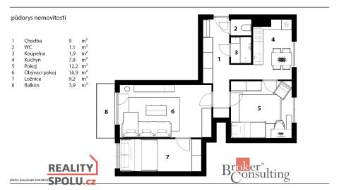 Byt o dispozici 3+1 má celkovou plochu (58,96m²), nachází se ve druhém patře a nabízí velmi komfortní bydlení. Součástí je prostorný balkon (3,9m²) s výhledem do oplocené zahrady, která náleží k domu a poskytuje příjemné soukromí i prostor k odpočinku. K bytu dále náleží sklep o výměře (6,5m²) a možnost využití garážového stání na oploceném pozemku, kam mají přístup výhradně majitelé bytů či garáží.