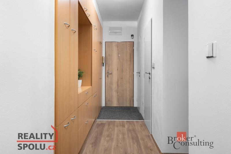 Byt se nabízí kompletně vybavený nábytkem i spotřebiči, což umožňuje okamžité nastěhování bez dalších investic. Již při vstupu Vás potěší velmi prostorná vestavěná skříň na míru, která nabízí dostatek úložného prostoru, a také praktická úložná komora o velikosti (1,7m²), umístěná na konci chodby.