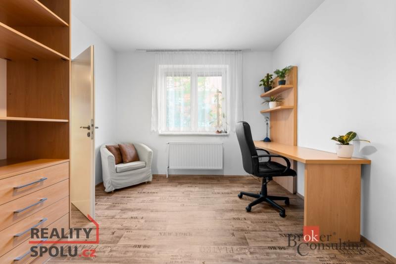 Ložnice je vybavena vestavěnou skříní a manželskou postelí včetně matrací. Obývací pokoj poskytuje příjemné zázemí pro odpočinek i společné chvíle, je vybaven sedací rozkládací soupravou, obývací stěnou, televizí a dalším úložným nábytkem. K využití je také další samostatný pokoj, který lze využít jako pracovnu či dětský pokoj; je vybaven šatní skříní a pracovním stolem se židlí.