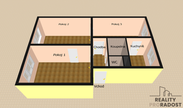 Ačkoliv v bytě nenajdete balkon, k dispozici jsou hned tři sklepní prostory o rozměrech 4,4 m2, 1,2 m2 a 1,3 m2. Zejména ten největší ocení každý kutil nebo ti, kteří potřebují dostatek úložného prostoru.