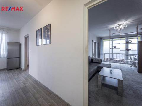 Exkluzivně nabízíme k pronájmu byt 3+1. Výměra bytu cca 70 m2. Osobní vlastnictví. Dispozičně byt nabízí kuchyň a tři samostatný pokoje. Z obývacího pokoje je vstup na lodžii. Koupelna se sprchovým koutem a WC jsou po kompletní rekonstrukci. Chodba s komorou, velký úložný prostor. V zádveří je možné umístit předsíňovou stěnu. K bytu náleží 1 sklepní kóje. Společné prostory domu. Byt se nachází v šestém patře ze šesti. Výtah. Dům je po rekonstrukci (plastová okna, zateplení střechy, nová fasáda a nový výtah). Měsíční nájemné 12.500,-Kč + služby ve výši 4.500,-Kč. Elektřina bude převedena na nájemce. Vratná kauce 12.500,-Kč, provize RK 12.000,-Kč. Pouze dlohodobý pronájem. Pro více informací či zájmu o prohlídku volejte.