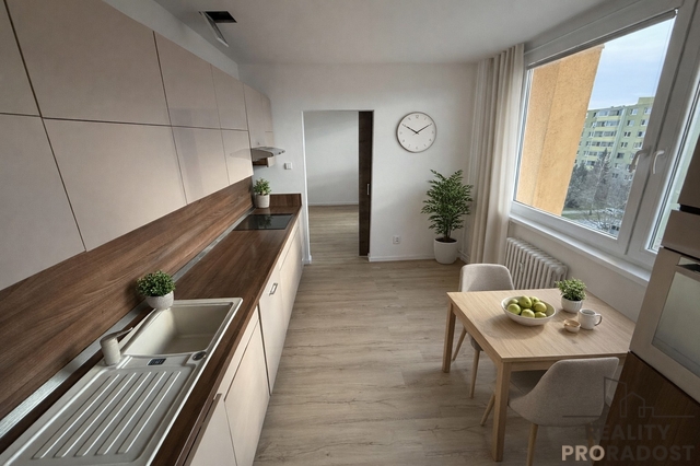 Hledáte zrekonstruovaný byt k pronájmu na fajn adrese s rychlou dostupností na dálnici či do samého centra města Přerova? Pak je tato nabídka ideální pro Vás. Byt s dispozicí 3+1 o vel. 71 m2 se nachází v 5. patře panelového domu s výtahem. Byt vyniká prostorným obývacím pokojem hned za kuchyní a krásným výhledem. Samozřejmostí je kuchyňská linka se spotřebiči (el. rychlovarná deska, el. trouba, digestoř, myčka, mikrovlnná trouba). Ložnice je tak akorát prostorná. V bytě dále najdete koupelnu se sprchovým koutem i vanou, prostor na pračku, sušičku, wc atd. Oceníte chodbu s místem pro věšák a samostatnou šatnu. Součástí bytu je sklep v suterénu domu na uložení Vašich věcí. Velkou předností je umístění nemovitosti. Nachází se na ul. Na Odpoledni v Přerově. V těsné blízkosti najdete školku, školu, lékaře, obchodní centrum atp. Na výběr máte veškeré služby i MHD. Byt je k nastěhování od 1.4. nebo dle domluvy. Budu se na Vás těšit na osobní prohlídce.