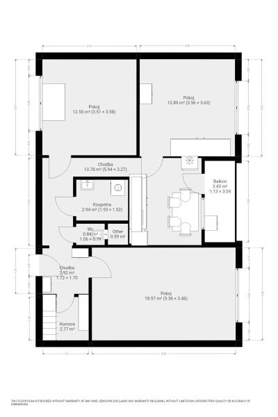 K pronájmu, Byt 2+1, 54 m2 Brno, Botanická