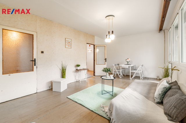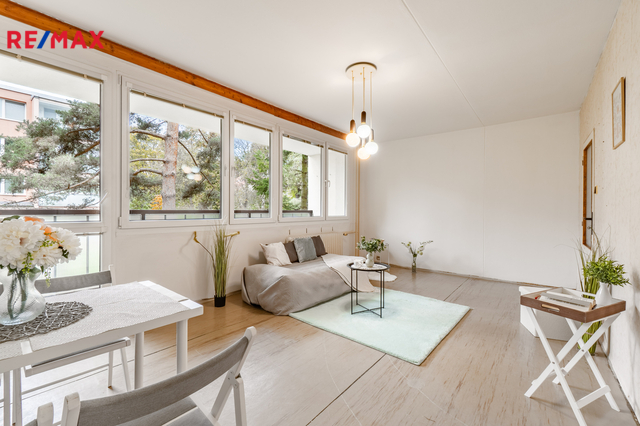 Byt je v původním, udržovaném stavu a nabízí praktické a pohodlné bydlení. Dispozice je velmi funkční – obývací pokoj se vstupem na prostornou lodžii, samostatná kuchyně, dvě ložnice, koupelna, samostatné WC a komora. Díky umístění v 1. patře a příjemné orientaci je byt světlý, tichý a působí velmi vzdušným dojmem.