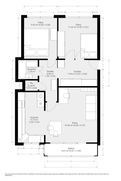 K pronájmu, Byt 2+kk, 47 m2 Brno, Srnčí
