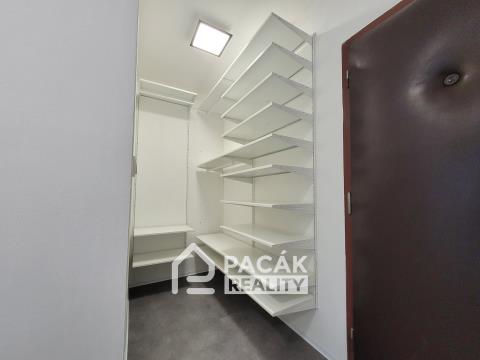 šatnou. Velkou výhodou bytu je prostorná zasklená lodžie. K bytu náleží koupelna s vanou a