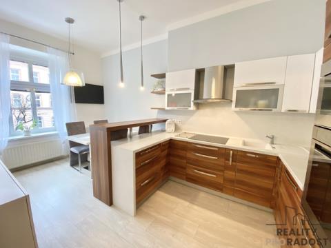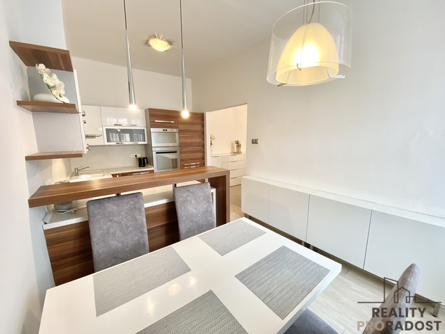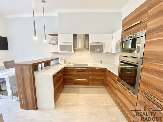 Nabízíme Vám k pronájmu velmi pěkný, cihlový byt s lodžií v centru Olomouce na ulici 17. listopadu. Byt se nachází ve druhém nadzemním podlaží cihlového historického domu. Ve vnitrobloku je k dispozici udržovaná zahrada přístupná pro všechny obyvatele sousedících domů. Byt je o dispozici 3+1 a o výměře 84 m2. V bytě je vstupní chodba vybavená vestavěnou skříní, prostorným botníkem, věšákem a zrcadlem. V bytě je slunný obývací pokoj zařízený sedací soupravou, křesly, komodou, skříní, stolkem, televizním stolkem a televizí. Obývací pokoj navazuje na otevřenou kuchyni s vestavěnou kuchyňskou linkou a jídelním koutem. Kuchyně je kompletně vybavena spotřebiči - lednice, varná deska, el. trouba, digestoř a myčka. V kuchyni je také velký jídelní stůl a čtyři židle. V bytě je prostorná ložnice s velkou manželskou postelí, skříní a pracovním stolem se židlí V ložnici je zrcadlo, komoda a křeslo. Menší ložnice s manželkou postelí a dvěma nočními stolky je situovaná do dvora. Je zde koupelna s umývadlem, vanou a pračkou a WC je zvlášť. V bytě je zasklená lodžie s výhledem do dvorního traktu domu. Byt se pronajímá zařízený, včetně veškerého vybavení. K bytu náleží sklepní kóje v suterénu domu. Ulice 17.listopadu je ve vyhledávané lokalitě v centru města Olomouce. U domu zastavuje tramvaj nebo autobus MHD, v blízkosti je vlakové nádraží, v okolí je veškerá občanská vybavenost. Nájem činí 22.000,- Kč, poplatky za služby jsou 4.950,- Kč, kauce je stanovena na 44.000,-Kč. Zveme Vás na prohlídku! Byt je volný od března 2026.