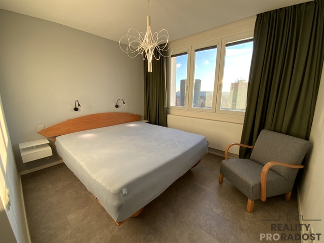 Nabízíme k pronájmu efektivně zařízený slunný byt 3+1 o velikosti 83 m² po kompletní rekonstrukci, umístěný v 7. patře z celkových 8 udržovaného panelového bytového domu s výtahem. Tento bezbariérový byt se pyšní výjimečnou polohou ve vyšším patře, která poskytuje nejen soukromí, ale i dechberoucí výhledy na Lhotecký les a okolí. Byt je k dispozici k nastěhování od listopadu 2025 a je ideální pro jednotlivce, pár nebo menší rodinu, kteří ocení kvalitní a pohodlné bydlení, prostorné místnosti a dostatek úložného prostoru v kombinaci s vysokým komfortem, kvalitou a moderním designem v klidném prostředí plném zeleně, se vším potřebným v okolí. Dispozice bytu zahrnuje: • reprezentativní obývací pokoj s lodžií orientovanou na západ, ideální pro večerní posezení při západu slunce • novou sedací soupravu s elektrickým výsuvem pro příležitostné spaní • hlavní ložnici s vlastní walk-in šatnou pro maximální komfort • druhou ložnici/pracovnu s orientací na severovýchod, skvělou pro práci z domova • samostatnou kompletně vybavenou kuchyni (lakovaná kuchyňská linka s vestavnými spotřebiči Whirlpool) • prostornou koupelnu • samostatné WC • mimořádně prostornou komoru • dostatek úložných prostor vč. vestavěných skříní a walk-in šatny Byt se vyznačuje nadstandardním provedením a prémiovými materiály, včetně odhlučněných dveří Sapeli a sanitárního zařízení značky Villeroy & Boch. K dispozici je rovněž klimatizace, podlahové vytápění v koupelně, klimatizační jednotka a radiátory, hlavice radiátorů dálkově ovládané přes appku, což zajistí příjemné prostředí po celý rok. Elektřina je zajištěna rozvodem 230 V s jističi 25 A. Internetové připojení poskytuje Vodafone s rychlostí 1 000 Mbit/s (možno až 2 000 Mbit/s) prostřednictvím optického kabelu. Nespornou výhodou bytu je klidné bydlení v zeleni s možností parkování bez modrých parkovacích zón. Dům je po rekonstrukci, společné prostory jsou monitorovány bezpečnostním kamerovým systémem 24/7. V domě je rovněž zabezpečená kočárkárna a kolárna v suterénu domu. Lokalita je skvěle dostupná, s dobrou dostupností silniční a městské hromadné dopravy, včetně autobusových spojení. Nájem: 28.900,- Kč Poplatky: 5.700,- Kč El. energie: převádí se na nájemníka Kauce: 50.000,- Kč Provize: 1 x nájem V případě zájmu o prohlídku nás neváhejte kontaktovat.