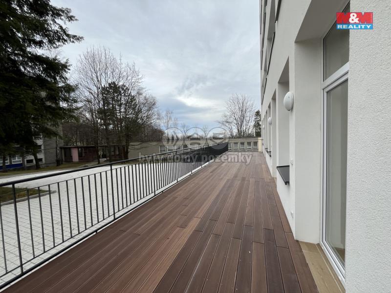Nabízíme pronájem bytu 3+kk s terasou, komorou a vlastním vstupem do domu i bytu. Byt i dům prošli rekonstrukcí, v bytě nová kuchyňská linka, elektroinstalace v mědi, na podlahách vinyl, v koupelně s WC dlažba a keramické obklady. Koupelna je se sprchovým koutem. Dům je zateplený, společné prostory nově opraveny, k bytu náleží sklep, který je umístěn naproti bytu na poschodí. Dům se nachází na okraji města, v části plně zeleně. Parkování u domu. Nájemné je 13 500,- Kč + teplo 3 200,- Kč + voda 300,- Kč/os. + elektřina 800,- Kč, kauce je 2 měsíční nájmy a provize 14 000,- Kč.