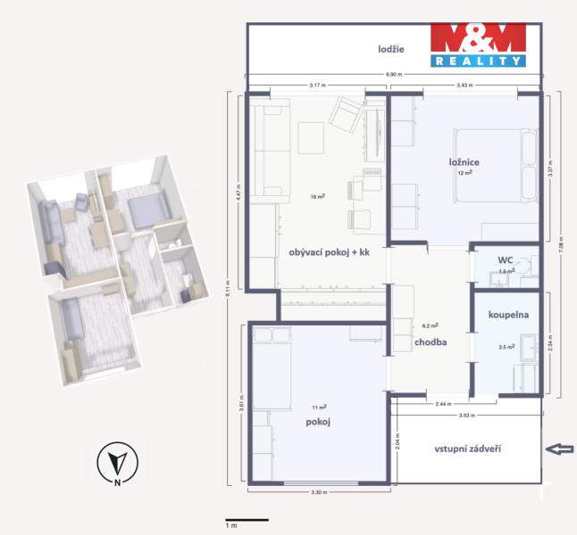 K pronájmu, Byt 3+1, 81 m2 Zdíkovská