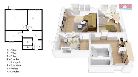 K pronájmu, Byt 2+kk, 60 m2 Ramonova