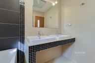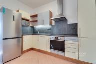Dispozice bytu: velký obývací pokoj s jídelní a kuchyňskou částí (kuchyňská linka, myčka, el. sporák, lednice s mrazákem, mikrovlnka), ložnice 13 m2, ložnice 8 m2, vstupní hala, prostorná koupelna (vana, 2x umyvadlo), WC (toaleta, bidet a umyvadlo se sprchou), technická místnost s pračkou a bojlerem. Topení - elektrický spořivé infra. panely, podlahy dlažba. Možnost internetu a tel.