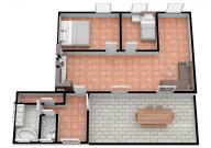 Samotný byt je o velikosti 76 m2 + terasa 24 m2 na jižní stranu, na terase je shrnovací pergola, posezení, zvýšený záhon a držáky na kola, vše je pouze pro tento byt. Byt má samostatný oddělený vchod. Byt je částečně zařízený.