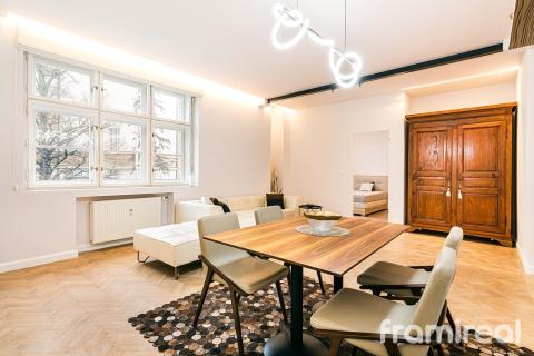 Dobrý den, k pronájmu nabízíme nadstandardně zrekonstruovaný byt o dispozici 3+kk a výměře 97 m², situovaný na prestižní a klidné adrese Charvatská v žádané rezidenční čtvrti Královo Pole. Nemovitost prošla kompletní modernizací včetně úpravy dispozice a nabízí velkorysý otevřený prostor, kvalitní materiály a velmi komfortní vybavení. Dominantou je prostorný obývací pokoj propojený s moderní kuchyňskou linkou vybavenou vestavnými spotřebiči – americkou lednicí, myčkou, varnou deskou s integrovaným výsuvným odsavačem par (downdraft) a dalšími prvky, které zajišťují pohodlné každodenní užívání. Zapuštěná LED svítidla v podhledech podtrhují elegantní atmosféru celého interiéru. V rámci rekonstrukce byly použity kvalitní povrchové materiály, včetně designové stěrky a renovovaných parketových podlah, které dodávají prostoru nadčasový a harmonický charakter. Součástí bytu jsou dvě ložnice. Hlavní ložnice má vlastní koupelnu s vanou, druhá ložnice je vybavena polohovatelnou postelí. Další koupelna v bytě nabízí sprchový kout. Ve všech obytných místnostech jsou připravena TV i kabelová internetová připojení, což umožňuje flexibilní uspořádání interiéru a plně vybavené zázemí pro práci z domova. Velkorysý úložný prostor zajišťují vestavěné skříně, které zachovávají čistou a jednolitou linii interiéru. K bytu náleží lodžie s výhledem do upravené zahrady ve vnitrobloku, sklepní kóje a pohodlný přístup zajišťuje výtah. Vysoké stropy spolu s použitím kvalitních materiálů podtrhují reprezentativní charakter celého prostoru. Lokalita nabízí klidné a zároveň velmi komfortní městské bydlení s veškerou občanskou vybaveností v docházkové vzdálenosti. V okolí se nacházejí obchody, kavárny, restaurace, služby, školy i kulturní instituce. Park Lužánky je rovněž snadno dostupný. Skvělá dopravní dostupnost zajišťuje rychlé spojení do centra i dalších částí Brna. Byt je připraven k okamžitému nastěhování a díky kompletní rekonstrukci a nadstandardnímu vybavení poskytuje velmi pohodlné a reprezentativní bydlení v jedné z nejžádanějších brněnských lokalit. V případě zájmu o prohlídku nás neváhejte kontaktovat – rádi vám byt osobně představíme.