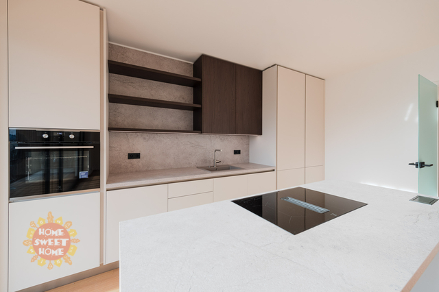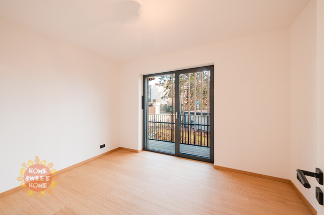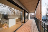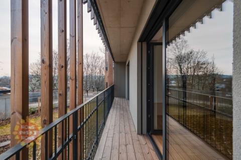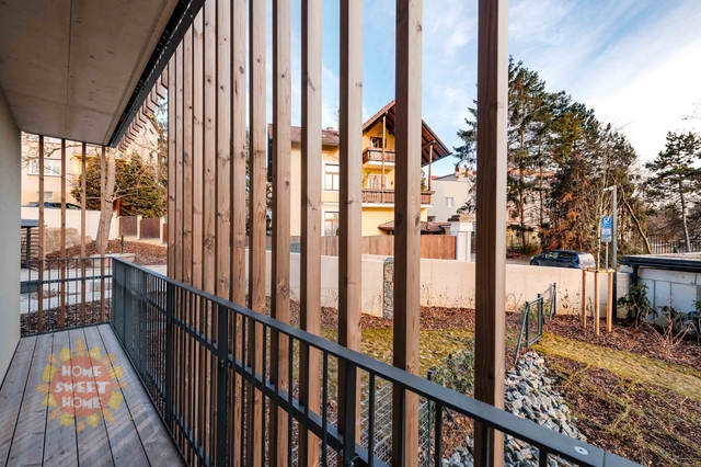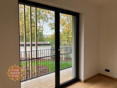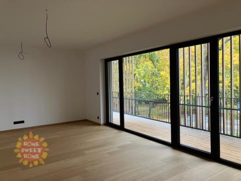 Právě dokončený nový byt 3+kk o rozloze 82 m2 se dvěma terasami o rozloze 17 a 11 m2 se nachází v 1. nadzemním podlaží s výhledem do zeleně.
