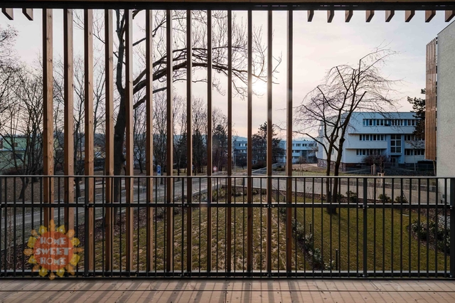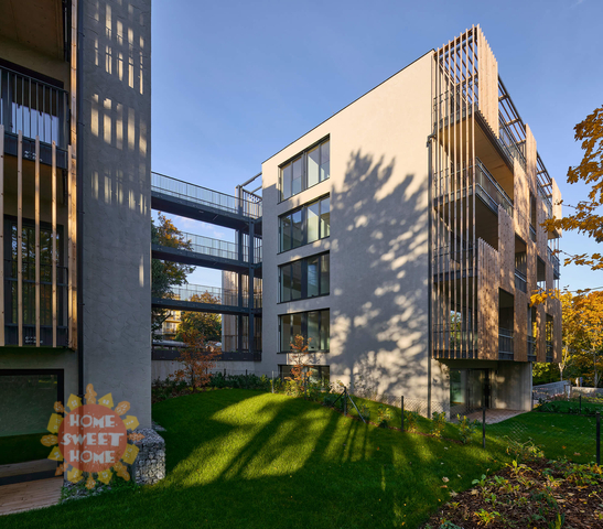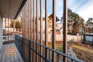Možnost využití: společné prostory, místnost na kola s mycím boxem, zahrada s pergolou a prostorem na grilování.