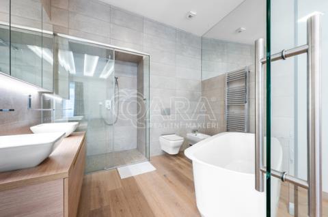Pronájem designového, špičkově vybaveného luxusního bytu, 3kk, 186m2 v 1. patře nákladně rekonstruované residence. Lokalita v srdci metropole je perfektně dostupná MHD, autem i na kole a nabízí překvapivě klidné a příjemné městské bydlení se všemi službami v bezprostřední blízkosti.