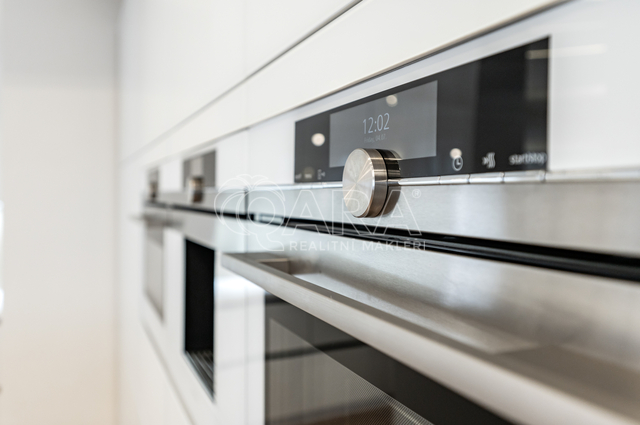 Byt je pronajímán s nadstandardním vybavením. Plně vybavená kuchyňská linka (indukční varná deska, el. trouba, lednice, mrazák, myčka, mikrovlnná trouba), jídelní stůl s židlemi, stylová sedací souprava, TV, pohodlný sedací nábytek, v ložnici luxusní manželská postel, druhá ložnice bez nábytku. Koupelna je vybavena produkty značky Preciosa, vyhřívanou podlahou. V bytě jsou dřevěné podlahy, velké množství úložného prostoru, vysoké stropy zajišťující dostatek světla. Sálavá vytápění a chlazení je umístěné ve stropech. Inteligentní systém ovládání domácnosti, systém nucené výměny vzduchu. K dispozici wifi. O vzhled interiéru se s důrazem na funkčnost a design postaralo vyhlášené architektonické studio de.fakto. Parkování je možné zajistit v OC Palladium.