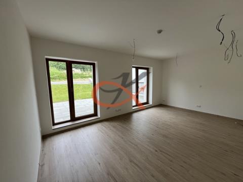 Pronájem bytové jednotky 3+kk v novostavbě v obci Horní Bečva. Byt se nachází v 1.NP, celková výměra je 58,5m2 a sestává se z pokoje 1- výměra 15m2, pokoje 2- výměra 11m2, pokoje s kuchyní - výměra 21m2, koupelny s toaletou 4m2, chodby 7,6m2. Z jednotlivých pokojů je vstup na venkovní terasu o velikosti 48m2. Byt je orientován na jihozápad. K dispozici jsou dvě parkovací stání 12,5m2 a zděný sklepní box o velikosti 8,7m2. Rezort se nachází v malebném prostředí Horní Bečvy s výhledem na vodní nádrž a v dostupnosti několika sjezdovek a SKI areálů a cyklostezek. Turisticky atraktivní místo je vedle lomu s vyhlídkou s úchvatnými pohledy do okolní krajiny, odpočinkovými altány jen 8km od Pusteven. Každá bytová jednotka má vlastní ohřev vody, vlastní měřiče energií, podlahové vytápění, vinylové podlahy, koupelna a WC RAKO, kuchyně s vestavnými spotřebiči. Volné po dohodě.