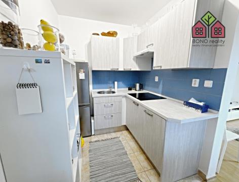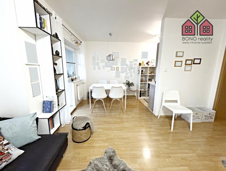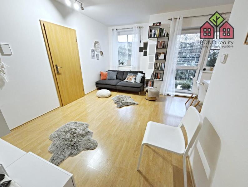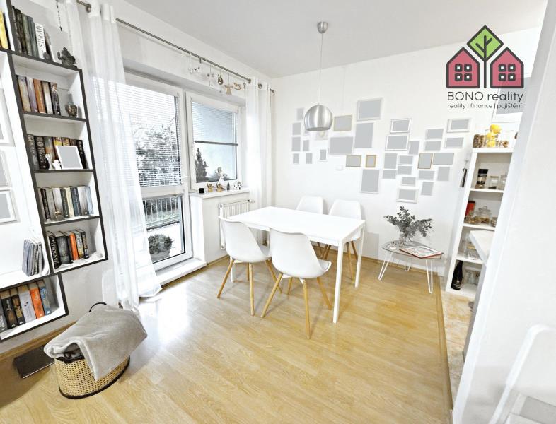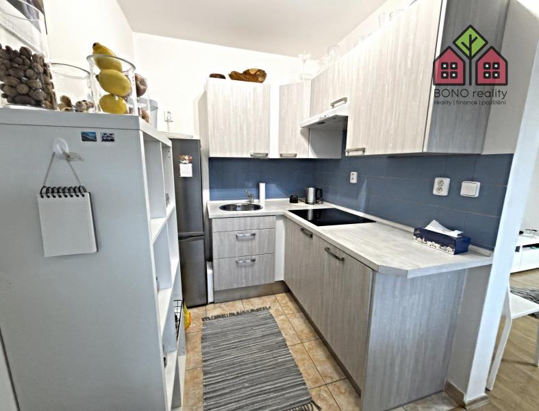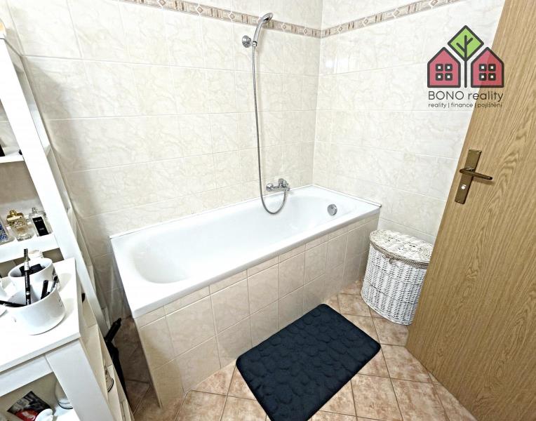 Vstup bytu tvoří chodba s přístupy do obývací části, ložnice, koupelny a na toaletu. Součástí obývací části je kuchyňský kout s novou linkou, sklokeramickou varnou deskou a myčkou nádobí. Prostor je zde i na větší jídelní stůl, umístění sedací soupravy a nezbytných skříněk. Z této části je také přístup na lodžii, která Vám poskytne v letních měsících možnost venkovních snídaní, relaxace, ale i pěstování okrasných rostlin či drobné zeleniny (rajčata, papriky). Z obývací části je vstup do menšího pokoje, jehož využití je velmi variabilní. Pokoj Vám může sloužit jako pracovna, šatna, domácí fitness nebo i jako dětský pokoj pro jedno dítě. Ložnice má pak samostatný vstup z prostor chodby. Koupelnové jádro je zděné, obložené příjemným keramickým obkladem. K dispozici je vana, umyvadlo a přípojka pro automatickou pračku. Toaleta je samostatná.