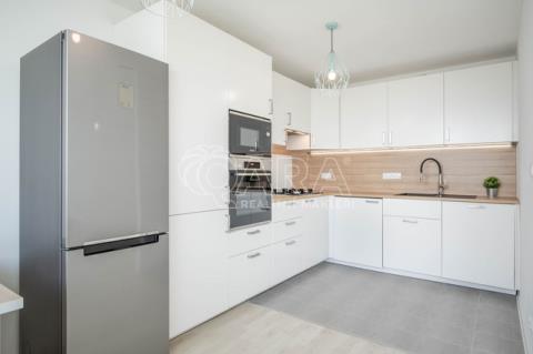 Hledáte byt o dispozici 3+kk ve velmi dobrém standardu? Jeden takový pro vás mám na Proseku 5 min pěšky od stanice metra s krásným výhledem na celou Prahu. Popis bytu Byt je v posledním 7. patře a nachází se v klidné ulici Litvínovská. Má užitnou plochu 67 m2 a je rozdělený na obývací pokoj s kuchyňskou linkou, 2 pokoje, koupelnu a samostatnou toaletu. Pro uložení věcí je v bytě praktická komora a vestavěná skříň v předsíni. Z obývací části je vstup na lodžii, ze které je krásný výhled na Prahu. K bytu patří i sklepní kóje (0,9 m2) umístěná na stejném poschodí. Vybavení bytu V bytě je k dispozici kuchyňská linka s plynovým sporákem, troubou a digestoří, mikrovlnkou, lednička a myčka a pračka (je v kuchyňské lince). V malém pokoji je jednolůžko (140x200 cm). V obývací části a pokojích jsou laminátové podlahy, v koupelně a na toaletě vinyl a v předsíni a komoře dlažba. Vybavení ložnice zobrazené ve virtuální prohlídce již není aktuální. Platí aktuální stav dle přiložených fotografií. V bytě je možnost připojení TV, Internet a telefon. Není zahrnuto v ceně pronájmu. Náklady spojené s pronájmem bytu Měsíční nájemné – 25 000 Kč Měsíční zálohy na služby – 5 500 Kč Měsíční záloha na elektřinu a plyn – dle vašeho nastavení s dodavateli energií (odhad 1 700 Kč dle předchozího nájemce) Kauce – 30 500 Kč Provize RK – 30 250 Kč Preferované podmínky pronájmu V současné době je byt volný. Nájemní smlouva na 1 rok s možností prodloužení. Elektřinu a plyn majitel převádí na nájemce.
