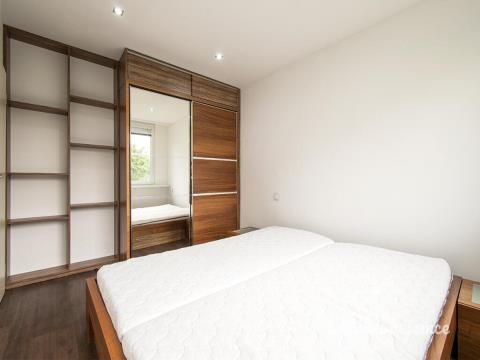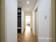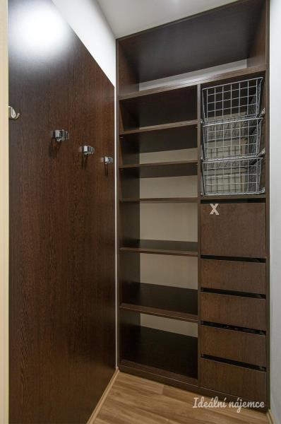 Byt se nabízí částečně vybavený. Kuchyňský kout disponuje moderní kuchyňskou linkou se spotřebiči - sklokeramická indukční deska, elektrická trouba, digestoř, mikrovlnná trouba, lednice s mrazákem, myčka nádobí. K dispozici je také jídelní stůl a židle. Obývací část je vybavena sedací soupravou, konferenčním stolkem, TV stěnou a televizí. V ložnici se nachází manželská postel a šatní skříň se zrcadlem. Třetí místnost je vybavena postelí a šatní skříní se zrcadlem. Koupelna disponuje vanou, sprchovým koutem, zrcadlem a skříňkami. Toaleta je zvlášť se skříňkami a zrcadlem. V bytě se nachází také šatna vybavena úložnými prostory.