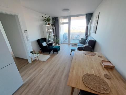 Se souhlasem majitele nabízíme k dlouhodobému pronájmu zařízený byt 3+kk o celkové ploše 77,9 m² (vč. lodžie) se sklepem v novém developerském projektu, který najdete v těsném sousedství historického centra města Brna, u nákupního centra Galerie Vaňkovka a ÚAN Brno - Zvonařka. Moderní bydlení v centru, s výhledem na okolí, k nastěhování od 15.1.2026.