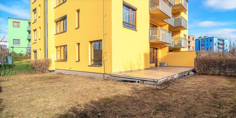 Sterling reality Vám nabízí exklusivně pronájem bytu 3+kk s terasou, předzahrádkou a garážovým stáním v rezidenci Bělohorské zahrady, ulice Čistovická, Praha - Řepy. Byt se nachází v cihlové novostavbě, 1. nadzemní podlaží, celková podlahová plocha bytu 72,1 m2 + terasa 36,9 m2 + předzahrádka 182 m2. K bytu dále náleží parkovací stání v suterénu domu a sklep (2,3 m2). Dispozice bytu: obývací pokoj s kuchyňským koutem a vstupem na terasu/předzahrádku, 2x neprůchozí ložnice, koupelna s vanou, samostatné WC a předsíň. Orientace bytu a předzahrádky na jihozápad. Vybavení: kuchyňská linka na míru, vest. varná deska s troubou, myčka, lednice s mrazákem, přípojka na pračku. Podlahová krytina: plovoucí a dlažba, topení na vlastní plynový kotel. Dům se nachází v oploceném areálu s nonstop vrátnicí - v bytě je také zabezpečovací zařízení propojené s vrátnicí (ostrahou). Parkování pro návštěvy lze jak v areálu, kde je několik parkovacích míst, tak před objektem Bělohorských zahrad, kde je rezervované parkoviště. Celý areál je velmi dobře udržovaný a naleznete zde i dětské hřiště pro menší děti. V okolí domu velmi dobrá občanská vybavenost - obchod Lidl 50m, MHD s nočními spoji, základní a mateřská škola, Fakultní nemocnice v Motole 10min., dobrá dostupnost do centra města i na letiště Václava Havla. K nastěhování koncem dubna, nebo od 1. května. Drobné zvíře dohodou, vhodné pro pár, rodinu i 2 osoby na spolubydlení. Možný i dlouhodobý pronájem. Více informací u makléře.